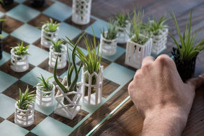 PCK Machines created 3D CAD models based on provided sketches for these chess pieces which double as containers for air plants.